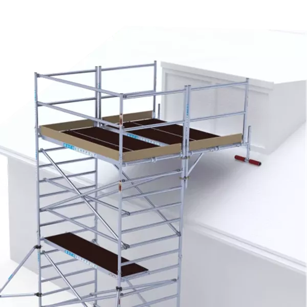 Deze uitwijkconsole past op alle rolsteigers gehuurd bij Steigermevrouw